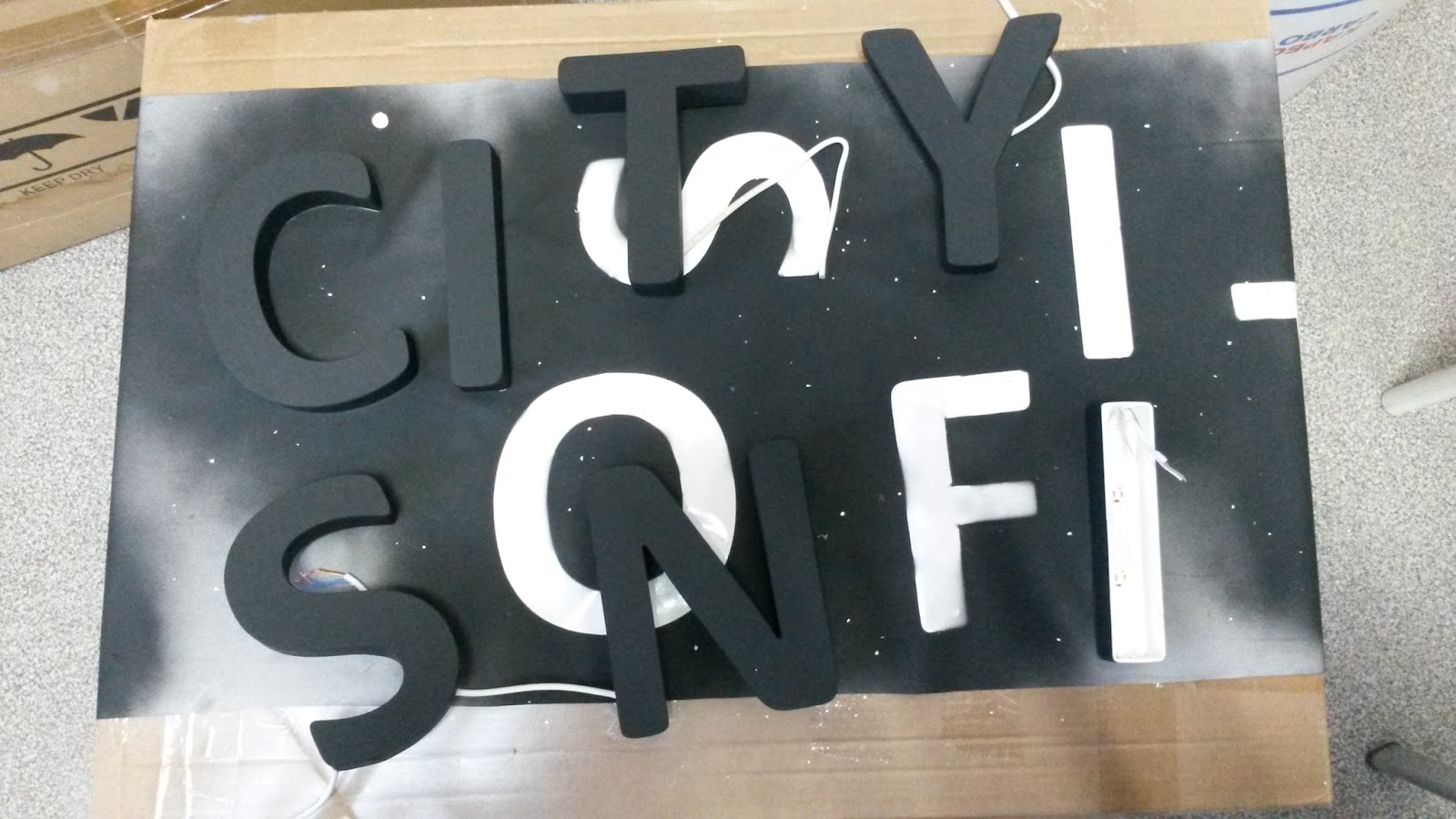 Город грехов - такая реклама. Это объемные не световые буквы с контражурной подсветкой. Диоды красного свечения закреплены на задней части буквы, которые на дистанции установлены на направляющих.